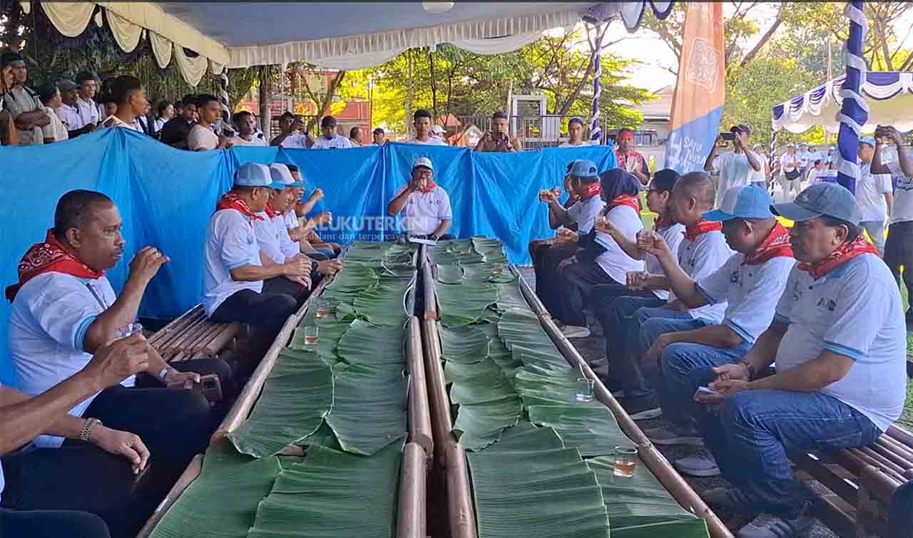 Usai membaca Ikrat Lesa, Rektor bersama para wakil rektor, para dekan, Direktur Pascasarjana, kepala lembaga, Ketua Umum DPP IKAPATTI, Ketua Harian DPP IKAPATTI serta anggota DPRD Maluku Nita bin Umar bersulang dan memenium miuman tomi-tomi.