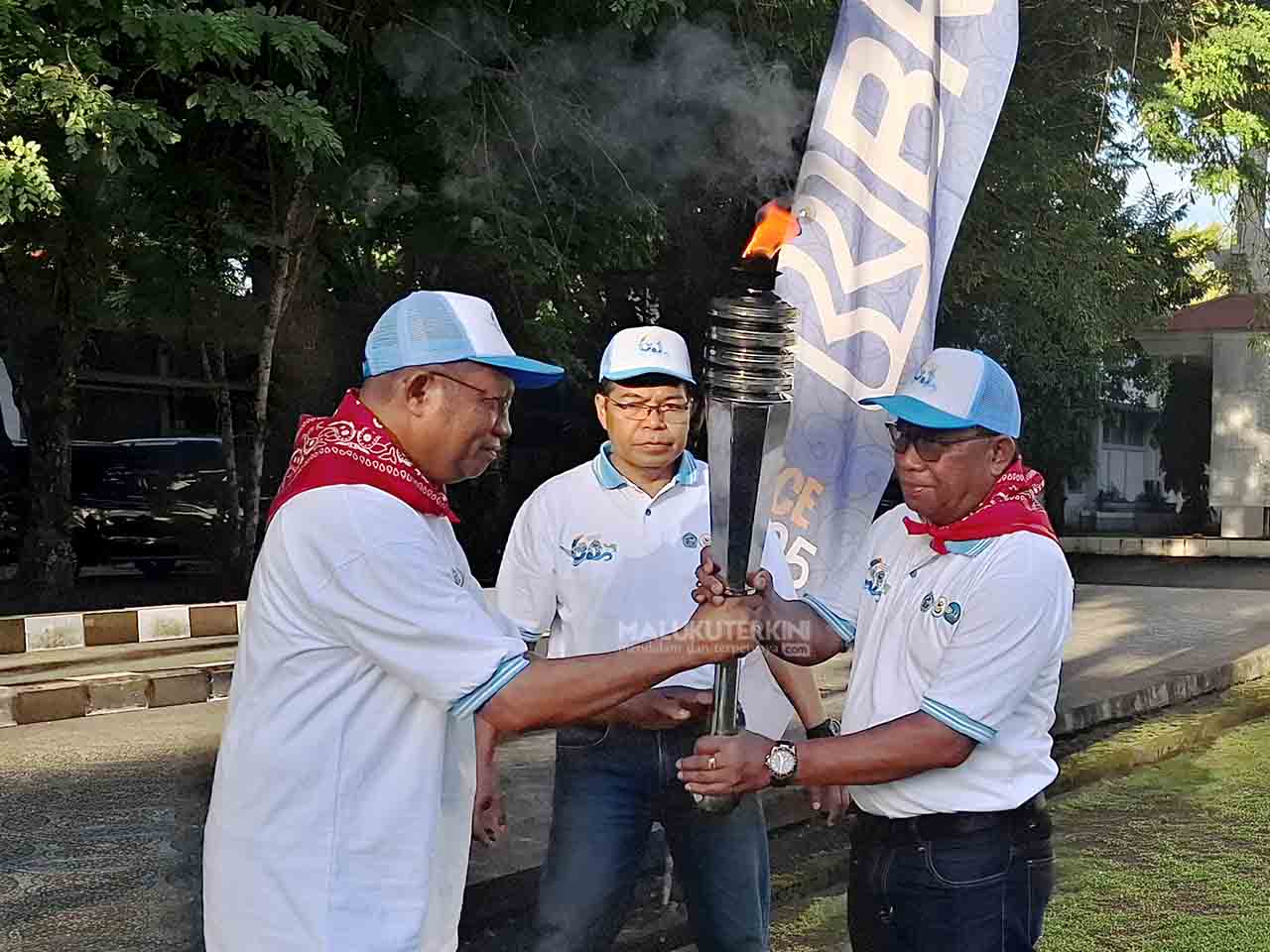 Obor tersebut dibawa dengan berlari secara estafet oleh perwakilan mahasiswa menuju pelataran Gedung Rektorat Unpatti, Poka, Ambon.