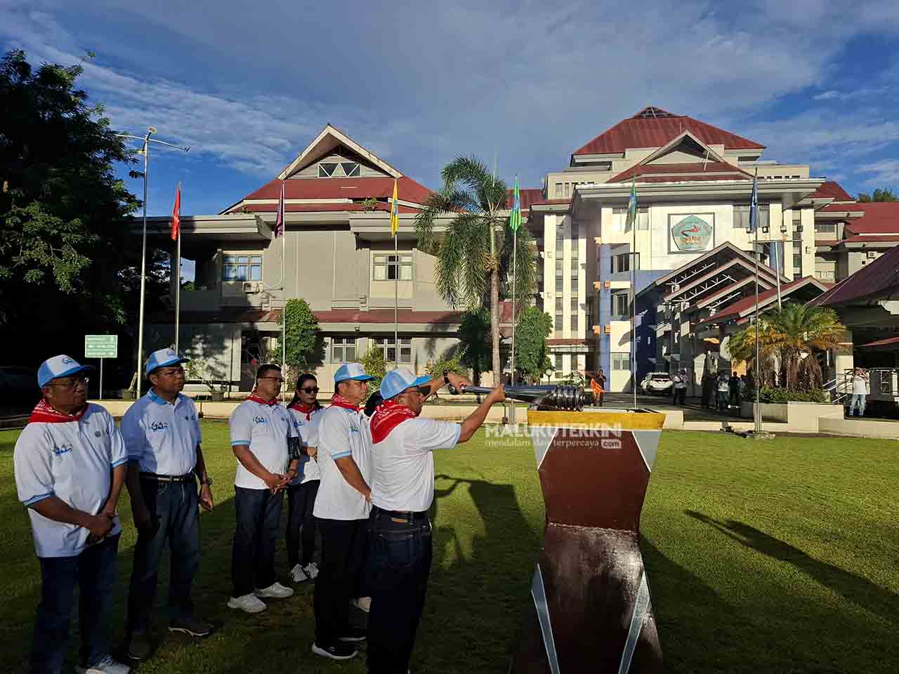 Obor tersebut dibawa dengan berlari secara estafet oleh perwakilan mahasiswa menuju pelataran Gedung Rektorat Unpatti, Poka, Ambon.