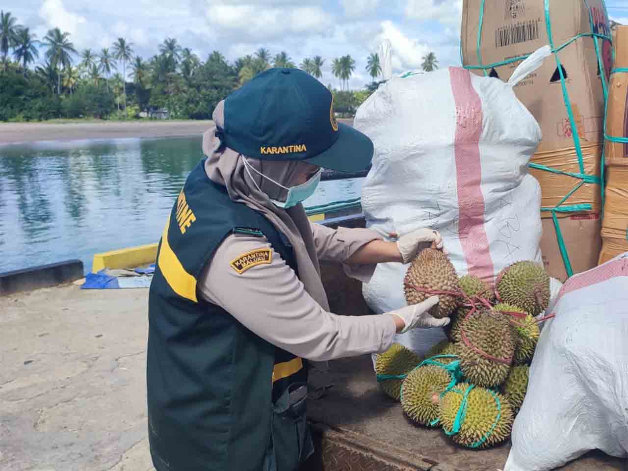 Tercatat sebanyak 4.462 kg durian diperiksa sebelum diberangkatkan dari Pelabuhan Kobisadar, Kecamatan Seram Utara Timur Kobi, Kabupaten Maluku Tengah (Malteng) menggunakan KM Cantika Lestari 10C dengan tujuan Weda, Kabupaten Halmahera Tengah, Maluku Utara.