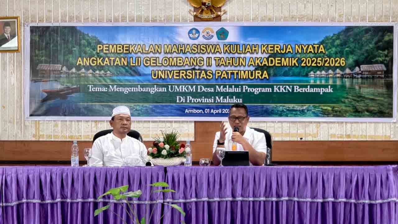 Pembekalan mahasiswa KKN tersebut berlangsung di Gedung Student Center FKIP Unpatti, Rabu (1/4/2026).