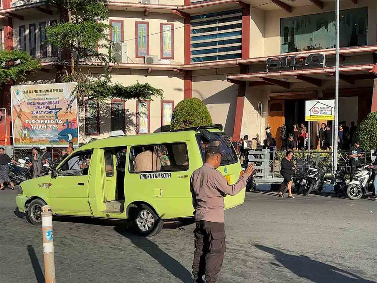 Selain itu, aparat kepolisian juga melakukan pengaturan arus lalu lintas di sekitar lokasi ibadah untuk mencegah kemacetan serta memberikan kenyamanan bagi jemaat.