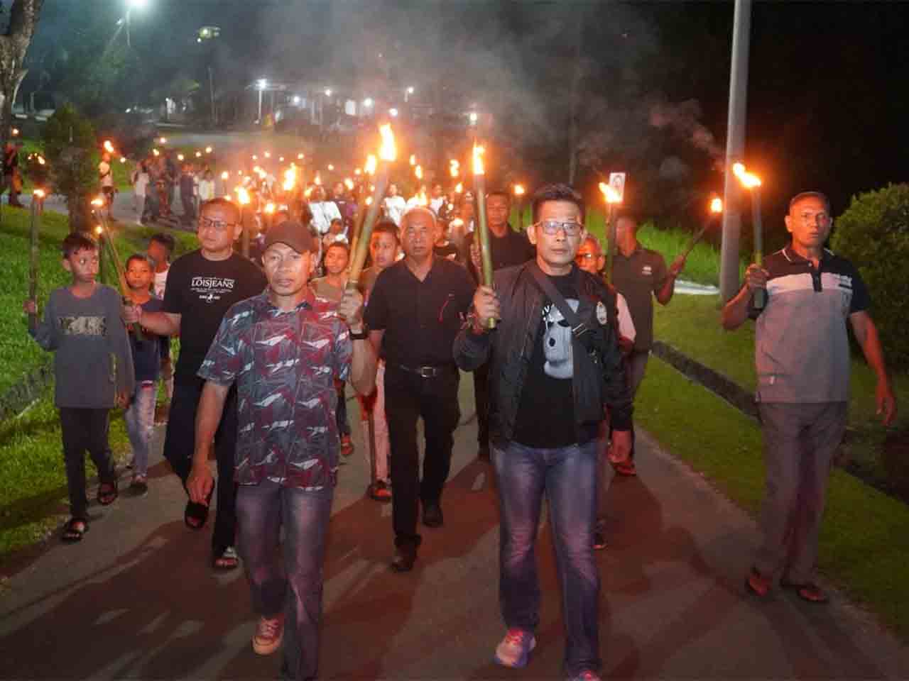 Rangkaian kegiatan kemudian dilanjutkan dengan jalan obor yang dilaksanakan pada Minggu (5/4/2026) pukul 02.30 WIT mengelilingi kesatriaan Kodaeral lX Halong, Kota Ambon.
