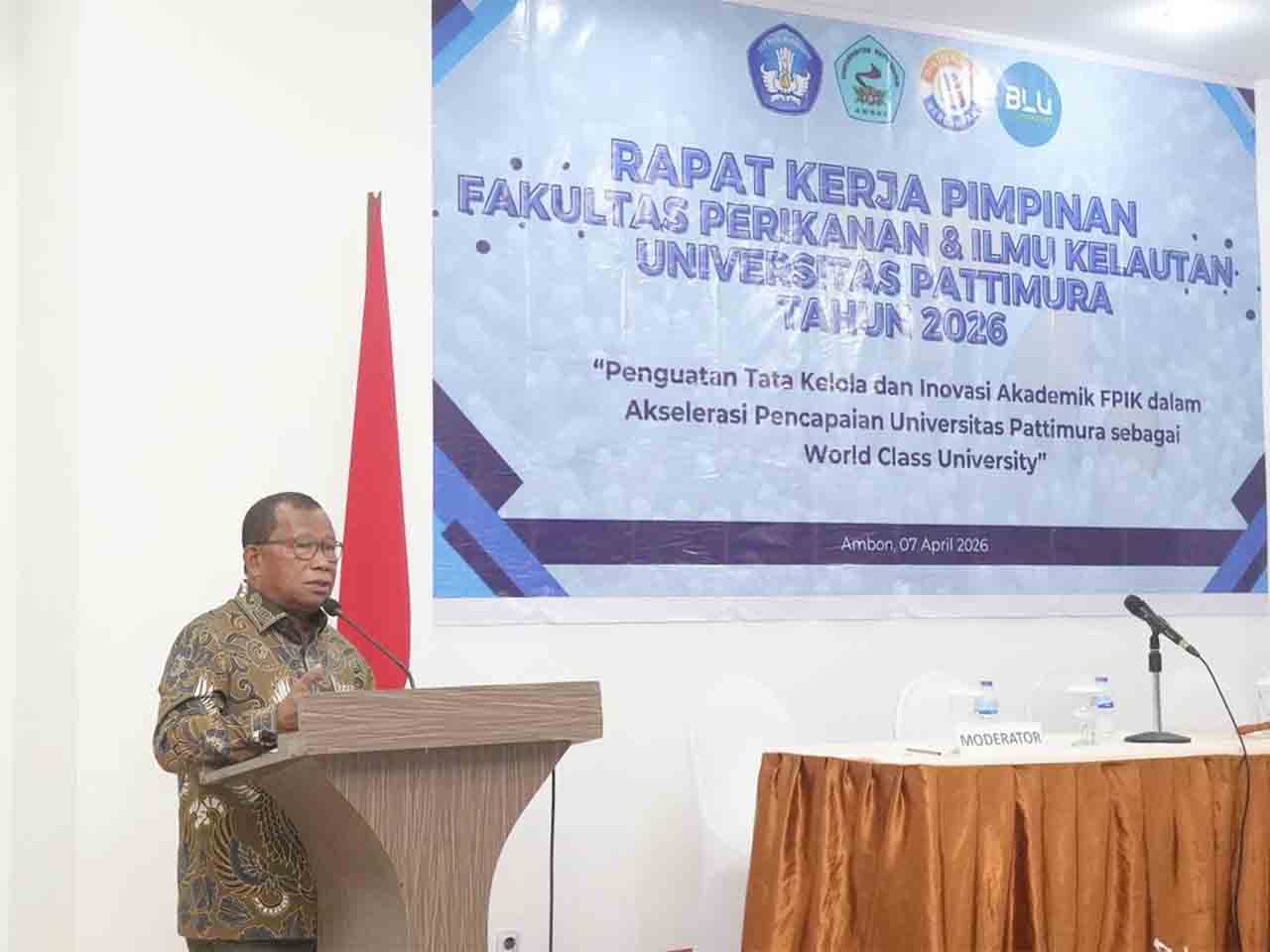 Hal itu diungkapkan Rektor Unpatti Prof Dr Fredy Leiwakabessy MPd saat Rapat Kerja Pimpinan (Rakerpim) FPIK Tahun Anggaran 2026 di Ambon, Selasa (7/4/2026).