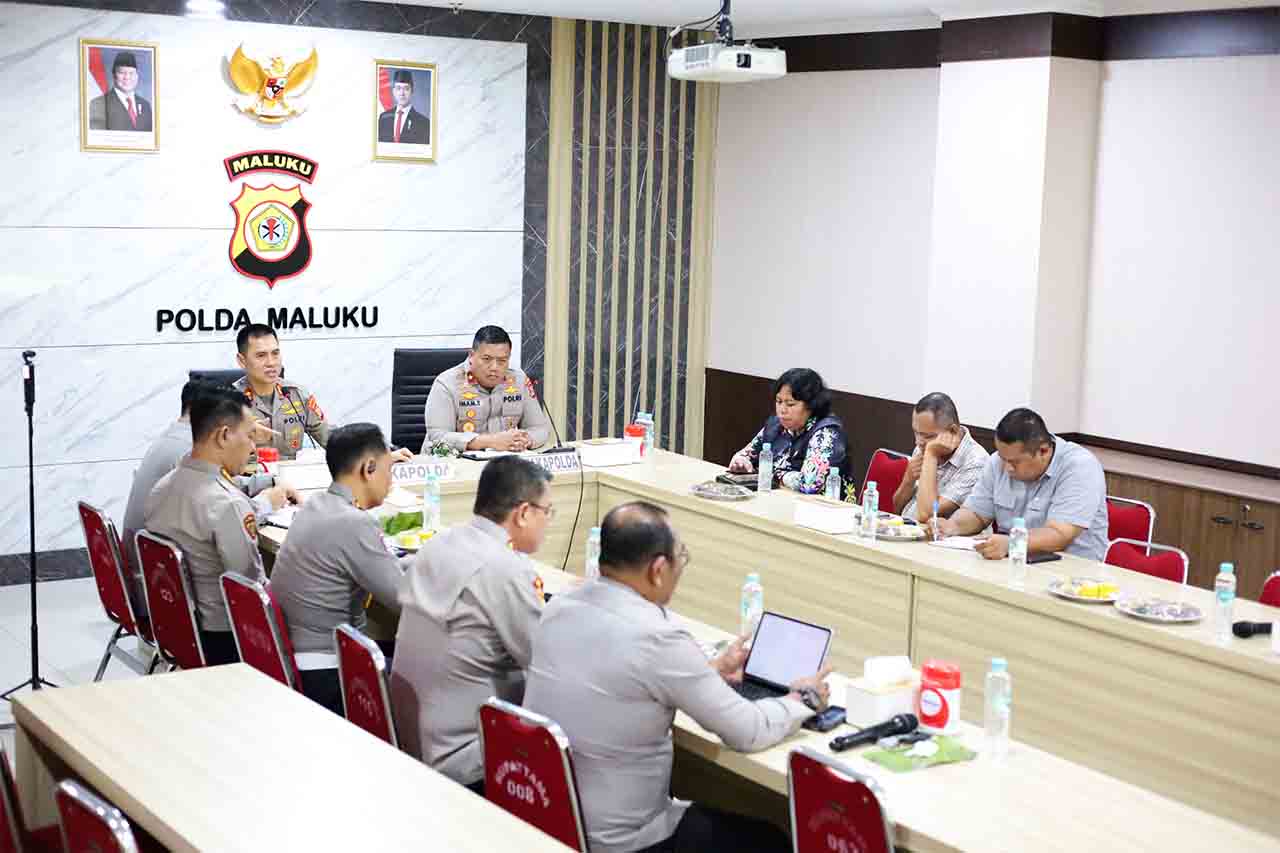 Rakor yang digelar di ruang rapat Mapolda Maluku, Jumat (10/4/2026), turut dihadiri Wakapolda Maluku Brigjen Pol. Iman Tobroni, pejabat utama Polda Maluku, serta Kepala Dinas Pendidikan dan Kebudayaan (Dikbud) Maluku Sarlon Singerin bersama jajaran.