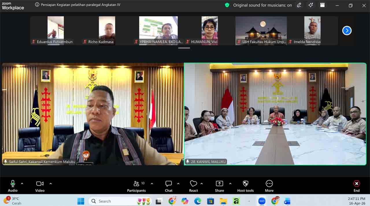Pertemuan yang berlangsung secara virtual pada Kamis (16/4/2026), ini dipimpin langsung Kepala Kantor Wilayah Kementerian Hukum Maluku, Saiful Sahri di ruang rapat pimpinan.