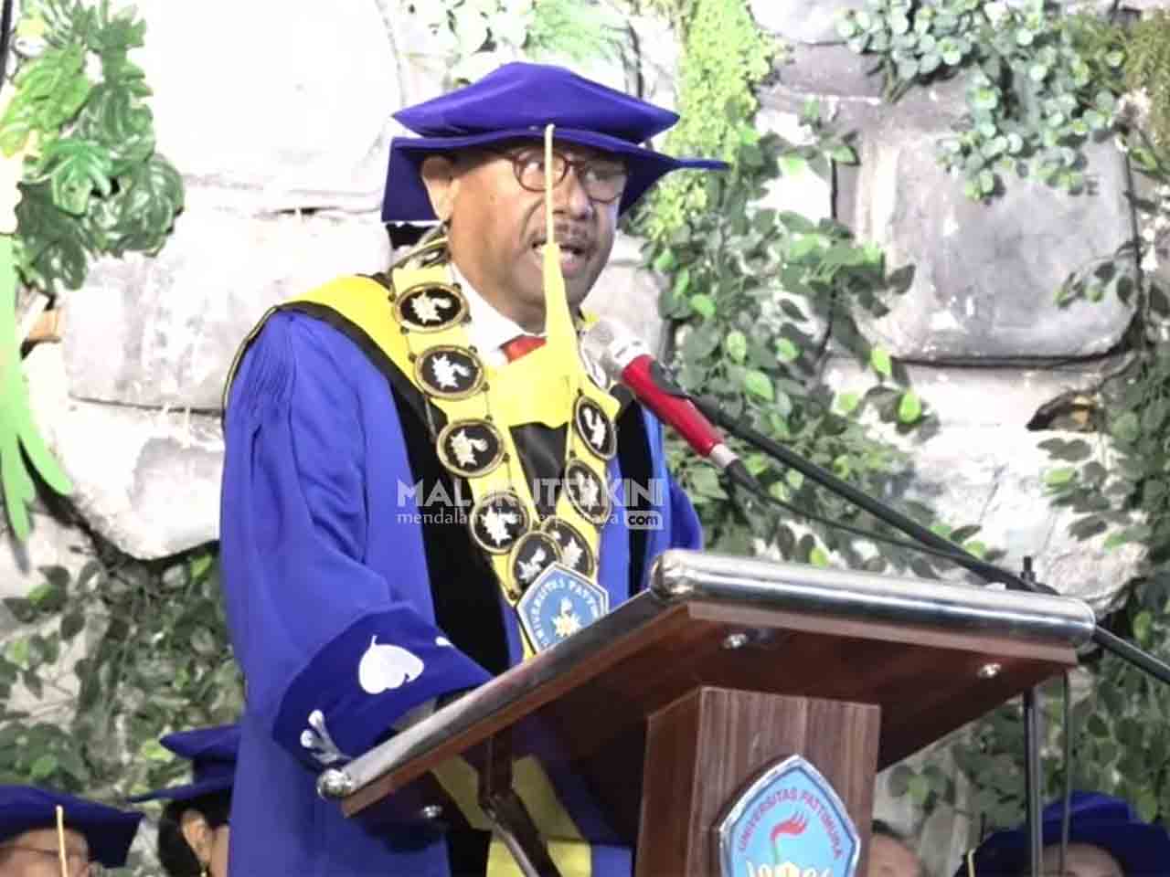 Hal itu ditegaskan Ketua Senat Unpatti. Prof Dr Tonny D Pariella MA saat menampaikan pidatonya pada Rapat Terbuka Luar Biasa Senat Unpatti dalam rangka Dies Natalis ke-63 serta Wisuda Sarjana, Profesi, Magister, Doktor periode April 2026 yang dipusatkan di Auditorium Unpatti, Ambon, Kamis (23/4/2026)