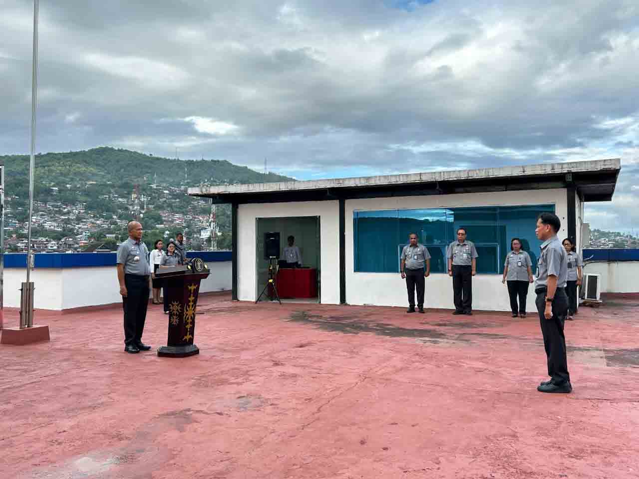 AMBON, MalukuTerkini.com – Dalam rangka menyatukan semangat dan memperkuat komitmen kerja, seluruh jajaran Kantor Wilayah Kementerian Hukum Maluku melaksanakan apel pagi secara rutin yang dilaksanakan, Senin(27/4/2026) di rooftop gedung kantor, sebelum memulai aktiifitas kerja sebagai bentuk profesionalitas dan kedisiplinan guna mencapai target kinerja organisasi secara maksimal.