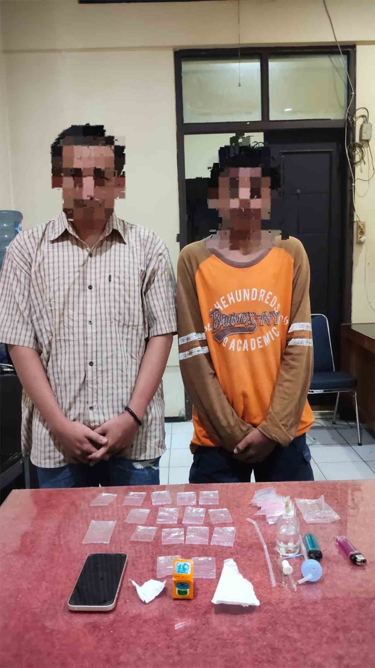 Saat dilakukan penggeledahan, jelasnya, petugas menemukan barang bukti berupa 16 paket kecil diduga sabu yang disimpan dalam plastik bening di saku celana salah satu terduga.