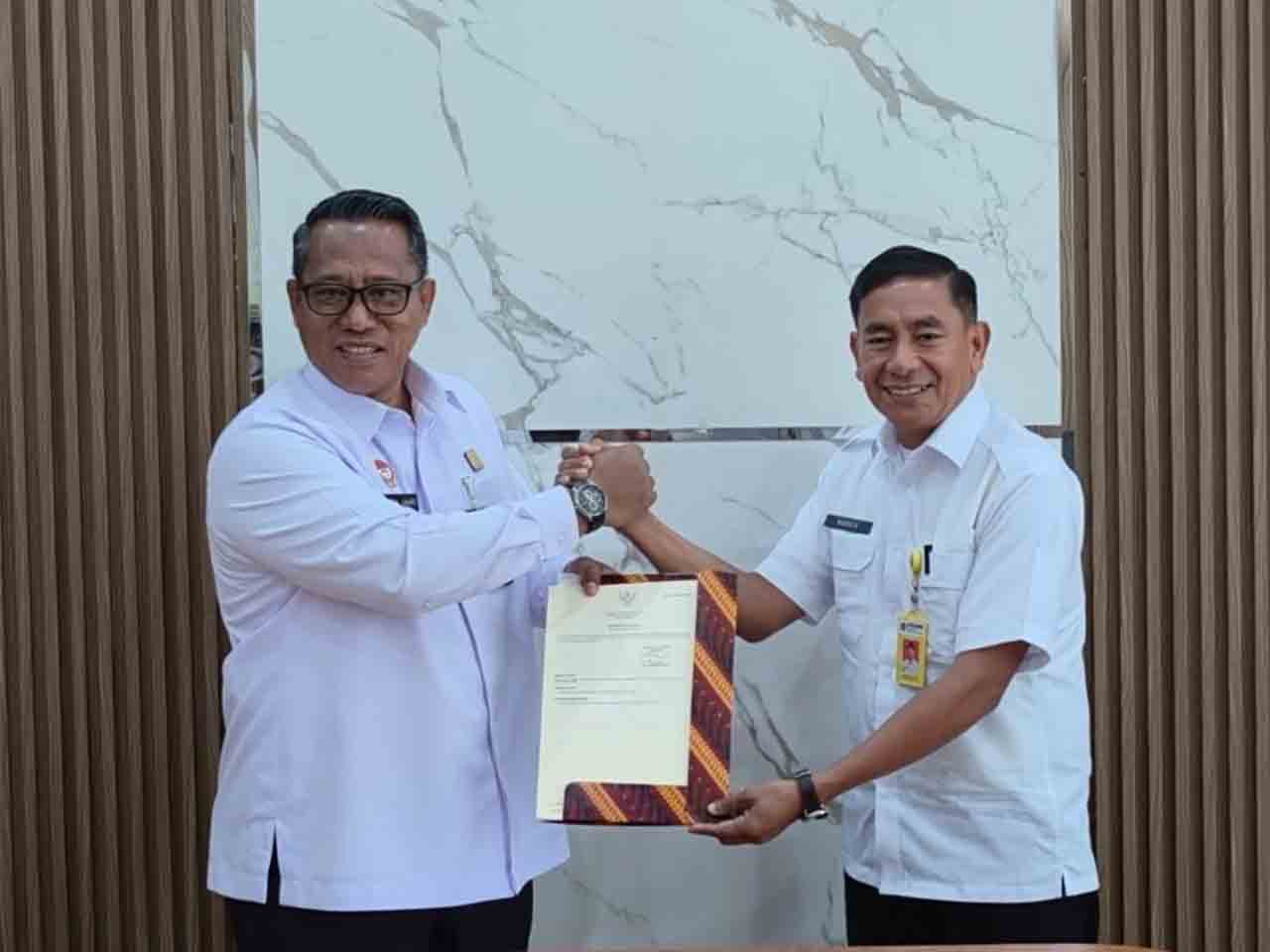 Bertempat di Kantor ATR/BPN Kota Ambon, Rabu (29/4/2026), Kepala Kantor Wilayah Kementerian Hukum Maluku, Saiful Sahri, menerima secara langsung Sertifikat Hak Pakai atas aset tanah milik Kementerian Hukum dari Kepala Kantor Pertanahan Kota Ambon, Rudy Sapulette.