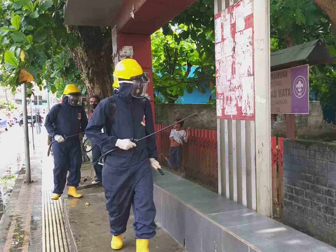 Giliran Brimob Maluku Semprot Disinfektan Di Kawasan Rumah Tiga & Wayame