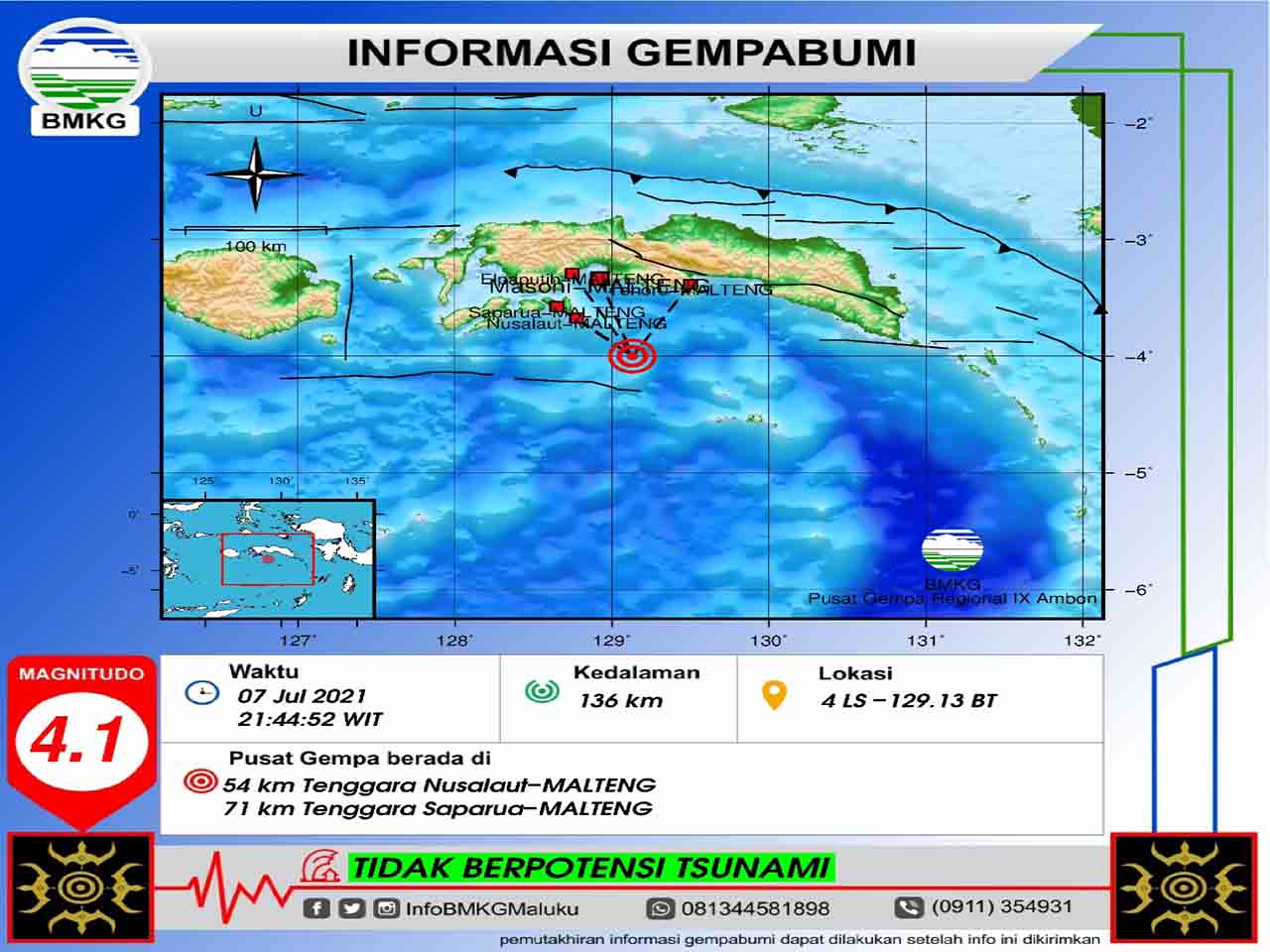 Gempa M 4,8 Guncang Wilayah Amahai, Nusalaut, Saparua & Sekitarnya