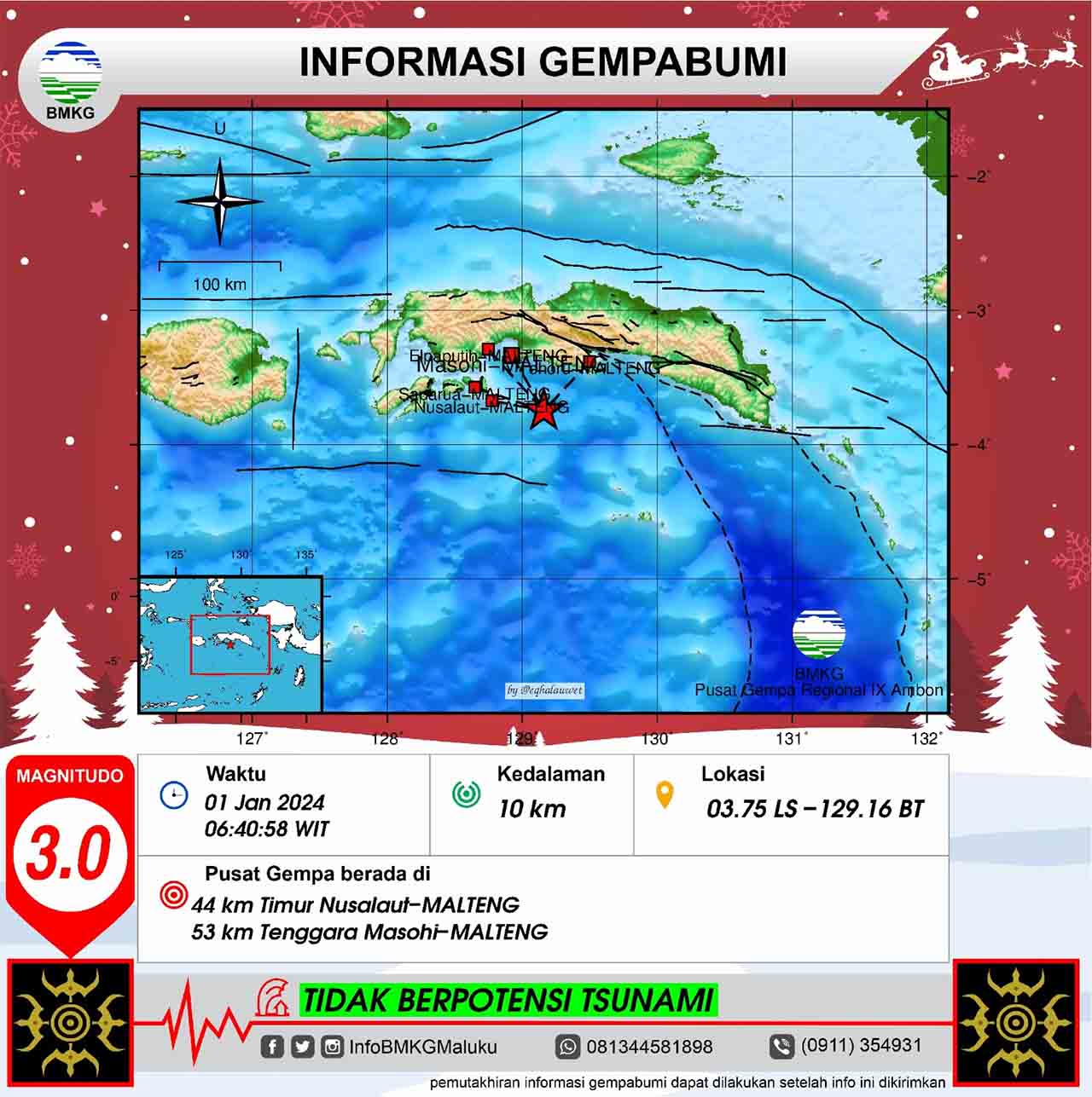 Awali 2024, Gempa M 3,0 Terjadi di Wilayah Malteng